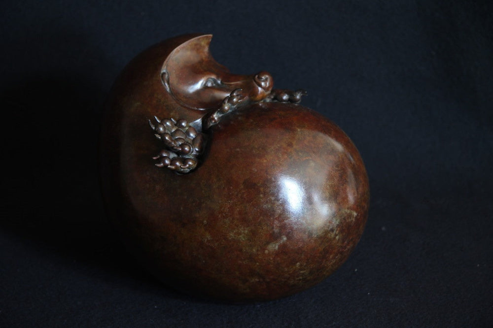 Large Hedgehog is a sculpture by famed sculptor, Adam Binder, and depicts a large Hedgehog curled up, with warm and reflective tones of bronze, this textural sculpture adopts lifelike features of the Hedgehog. Adam works primarily in bronze with the use of rich, earthy patinas which provides depth and texture, drawing from his experiences of nature he captures the characteristics of animals and nature to engage the eye in the detail of his works.