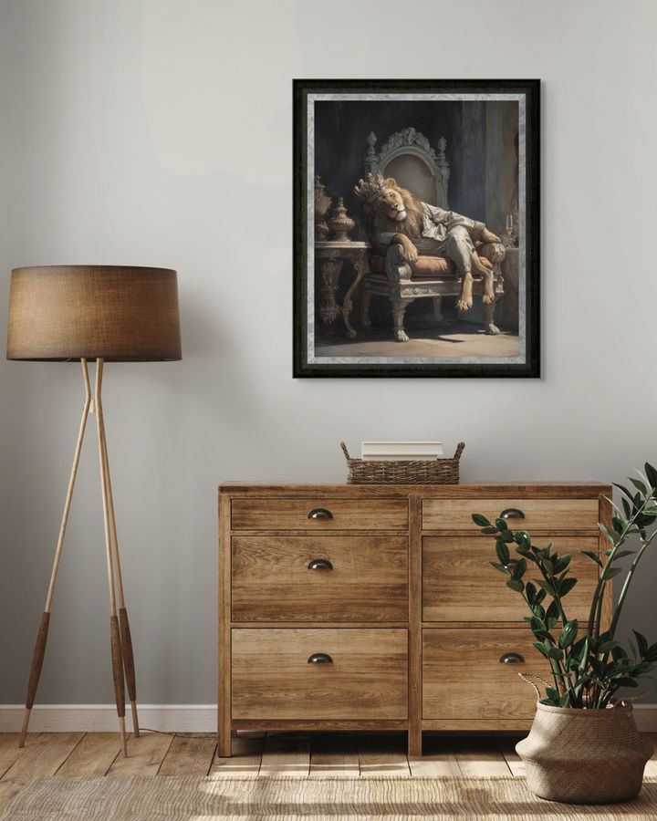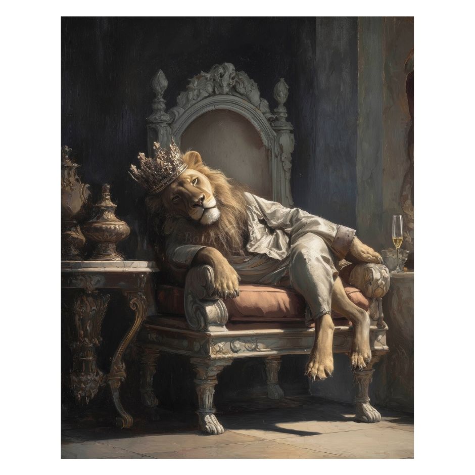 Just Lion Around by new artist to the Rose Gallery - Boid. Bold, bright & satirical characterises the art created by Boid - bringing a contemporary new edge to animal artwork. Just Lion Around features a regal lion resting on the throne. A true statement piece & sure to provoke a reaction!