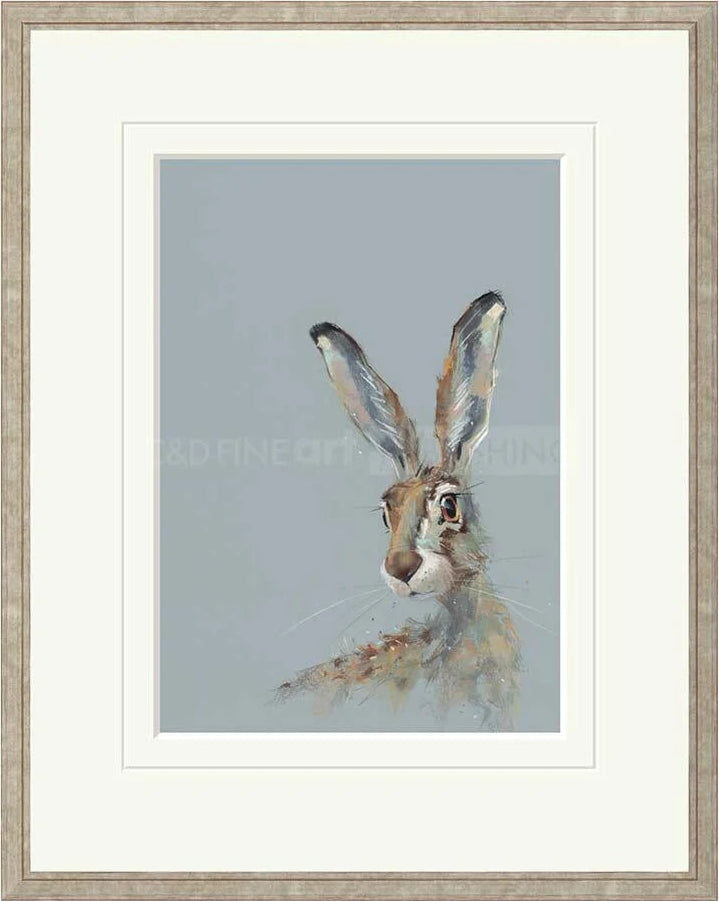 Bright Eyed by animal artist Nicky Litchfield is the portrait of a hare on a grey blue background. Nicky Litchfield is a talented British artist creating works of art using animals as her subject matter. Her work is characterised by coloured backgrounds with the animal often placed off centre which adds to the character & personality of the art.