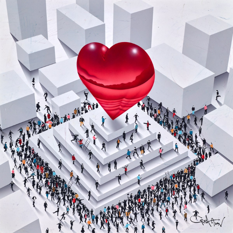 Connect the Dots by Craig Alan is an original mixed media artwork that is both playful and colourful, featuring a vibrant red heart surrounded by small figures. Renowned for his innovative mixed media art, Craig Alan creates captivating works composed of hundreds of tiny, intricately painted figures that collectively form powerful portraits and scenes. Each miniature character tells its own story, while together they celebrate the beauty of connection, creativity, and human expression. Craig Alan’s artworks are instantly recognisable, highly collectible, and sought after by collectors of contemporary art, celebrity portraits, and limited edition mixed media pieces worldwide.
