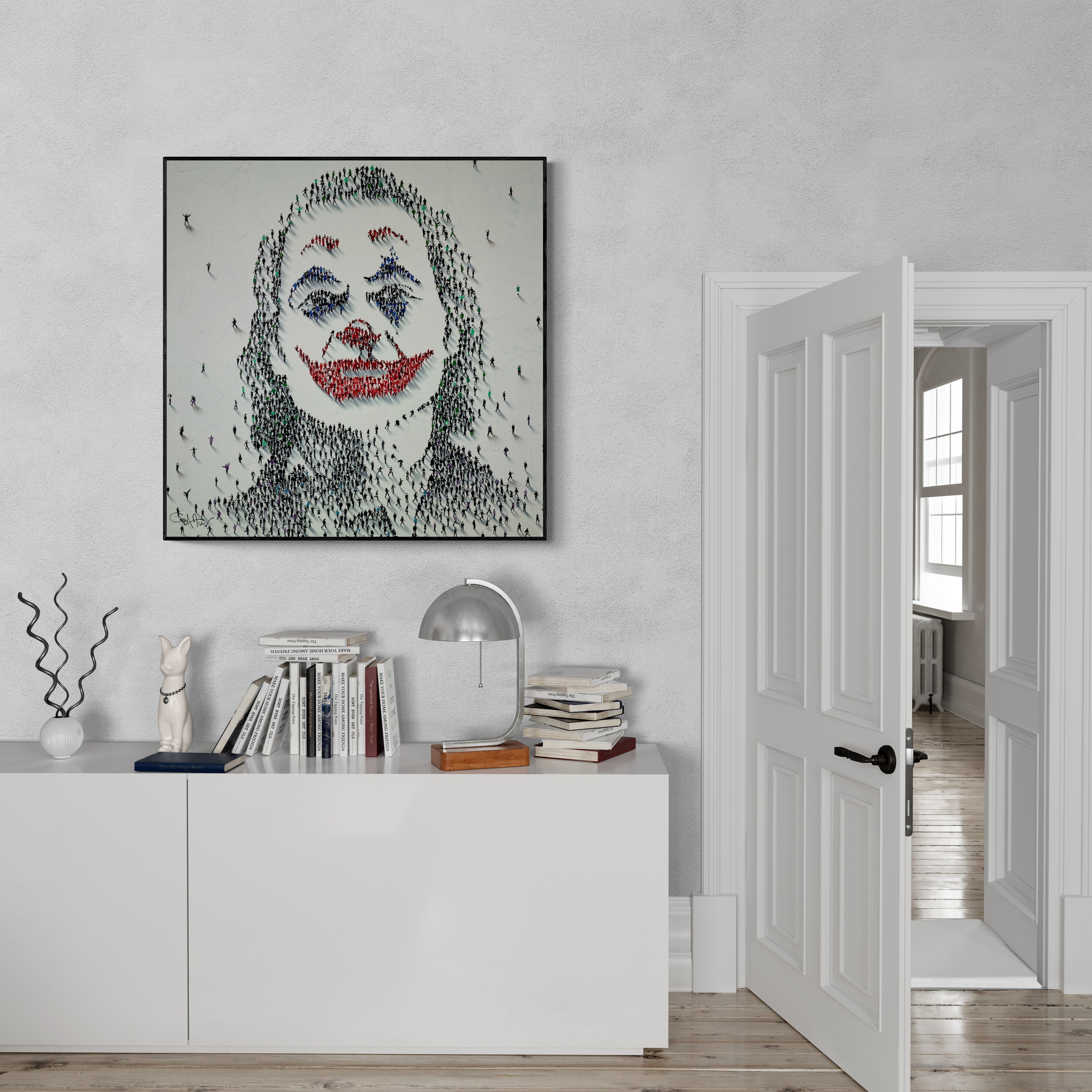 Send in the Clowns by Craig Alan features a crowd gathering, coming together to form a portrait of the iconic Joker from DC's Batman. In homage to the Joaquin Phoenix version of the infamous character. This inspirational piece is the ideal centrepiece for a fine art collection, the recognisable style of Craig Alan is delicate yet impactful.