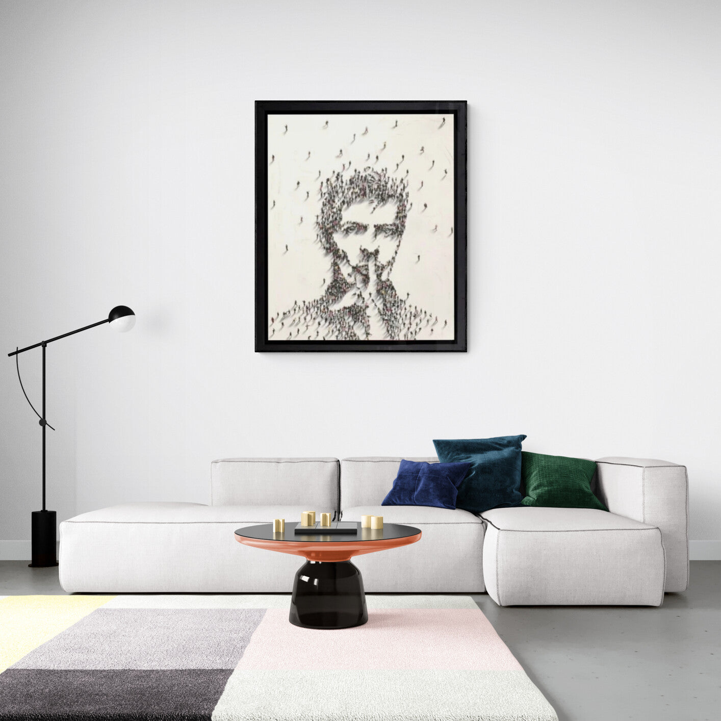 Shhh by Craig Alan features a crowd gathering, coming together to form a portrait of the iconic David Bowie. In homage to the Starman himself, Bowie lifts a finger to his lips and beckons quiet. This inspirational piece is the ideal centrepiece for a fine art collection, the recognisable style of Craig Alan is delicate yet impactful.