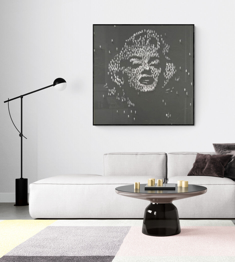 Trance by Craig Alan features a crowd gathering on a dark background, coming together to form a portrait of the iconic Marilyn Monroe, her sultry gaze gleaming out from the darkness to captivate the viewer. This inspirational piece is the ideal centrepiece for a fine art collection, the recognisable style of Craig Alan is delicate yet impactful.
