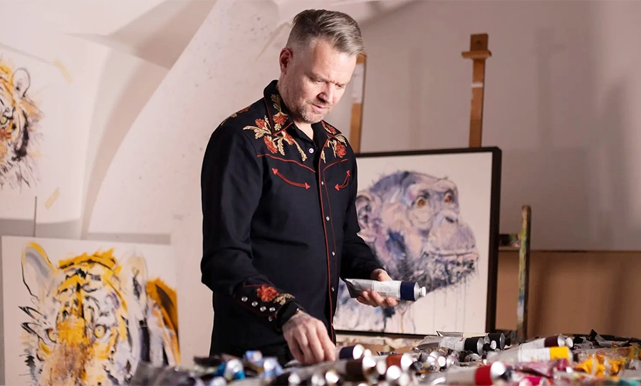 Contemporary British artist Dave White is known for celebrating popular culture and exploring emotive themes in his work. He graduated with a BA (Hons) in Fine Art (Painting) from Liverpool John Moores University and has achieved success since the beginning of his career, starting with his selection for the Northern Graduates exhibition at the Royal College of Art.In 1997, his wildlife paintings were showcased alongside David Hockney’s at the Animals in Art charity auction at Sotheby’s, sparking his first media appearances.
