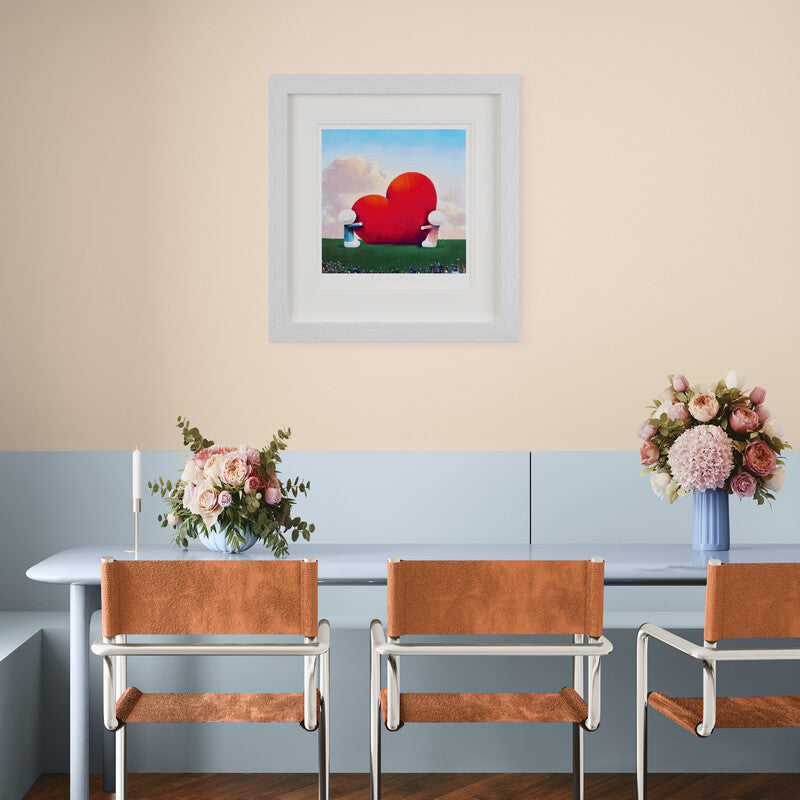 Love Found Us by Doug Hyde featuring his instantly recognisable smiling figures holding a vibrant red heart against a softly coloured sky, this artwork expresses a tender sense of togetherness and shared discovery. The charming composition is beautifully balanced and effortless to style, making it a natural fit for a wide range of interior settings. Finished in a soft white frame that enhances the delicate pastel tones, Love Found Us is a joyful celebration of love and connection, a perfect Valentine’s gift or a heartfelt way to mark meaningful moments and add warmth to the home. Doug Hyde is the UK's best selling artist celebrating 20 successful years in the industry. It is not difficult to understand the reason for his longevity - simple, naive style artworks that appeal to the universal language of love, family & values.