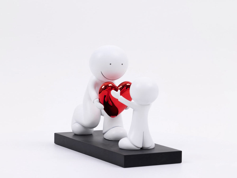The Greatest Gift by Doug Hyde is a heartfelt sculpture that captures the spirit of generosity and affection in a simple yet expressive moment. Depicting a smaller figure receiving a vibrant red heart from a larger companion, the piece quietly conveys themes of kindness, care and unconditional love. Finished in a clean, minimalist style, the smooth white figures are beautifully contrasted by a dark base. This charming sculpture makes a meaningful statement piece, ideal for celebrating family bonds, friendship or romantic love. Doug Hyde is the UK's best selling artist celebrating 20 successful years in the industry. It is not difficult to understand the reason for his longevity - simple, naive style artworks that appeal to the universal language of love, family & values.