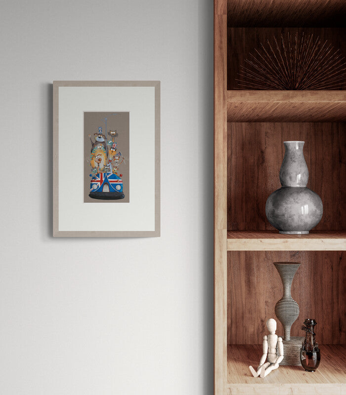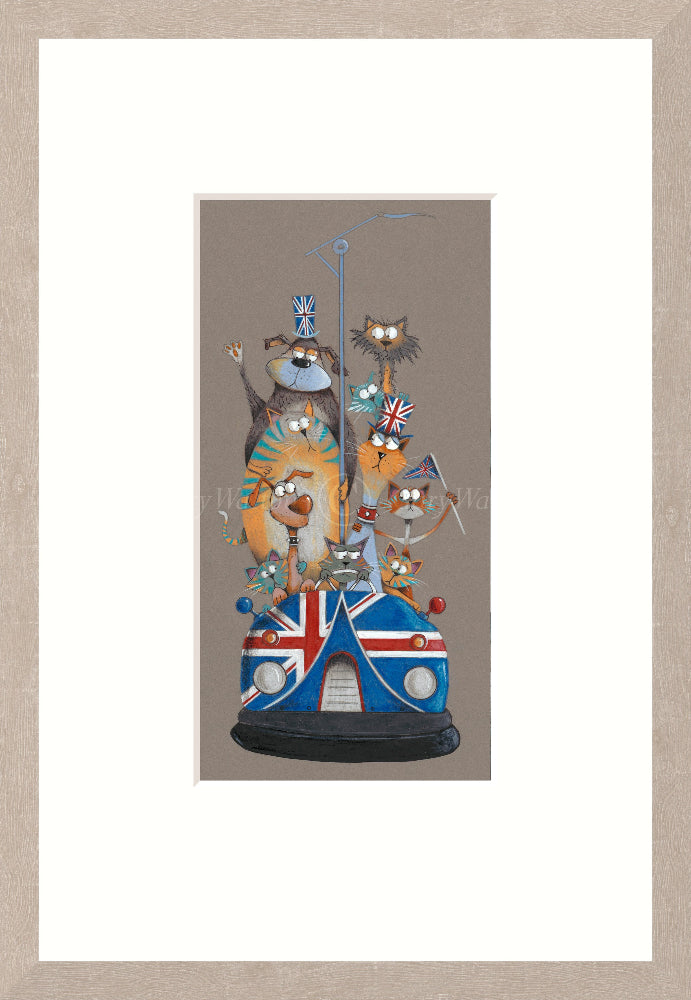 Scream for Speed I is a part of Gary Walton's brand new collection for Autumn 2025, and features a Union Jack car crammed full with fluffy friends as they zip along the road. This artwork can be grouped together with it's companion sketch artworks, Scream for Speed II, Scream for Speed III and Scream for Speed IV.