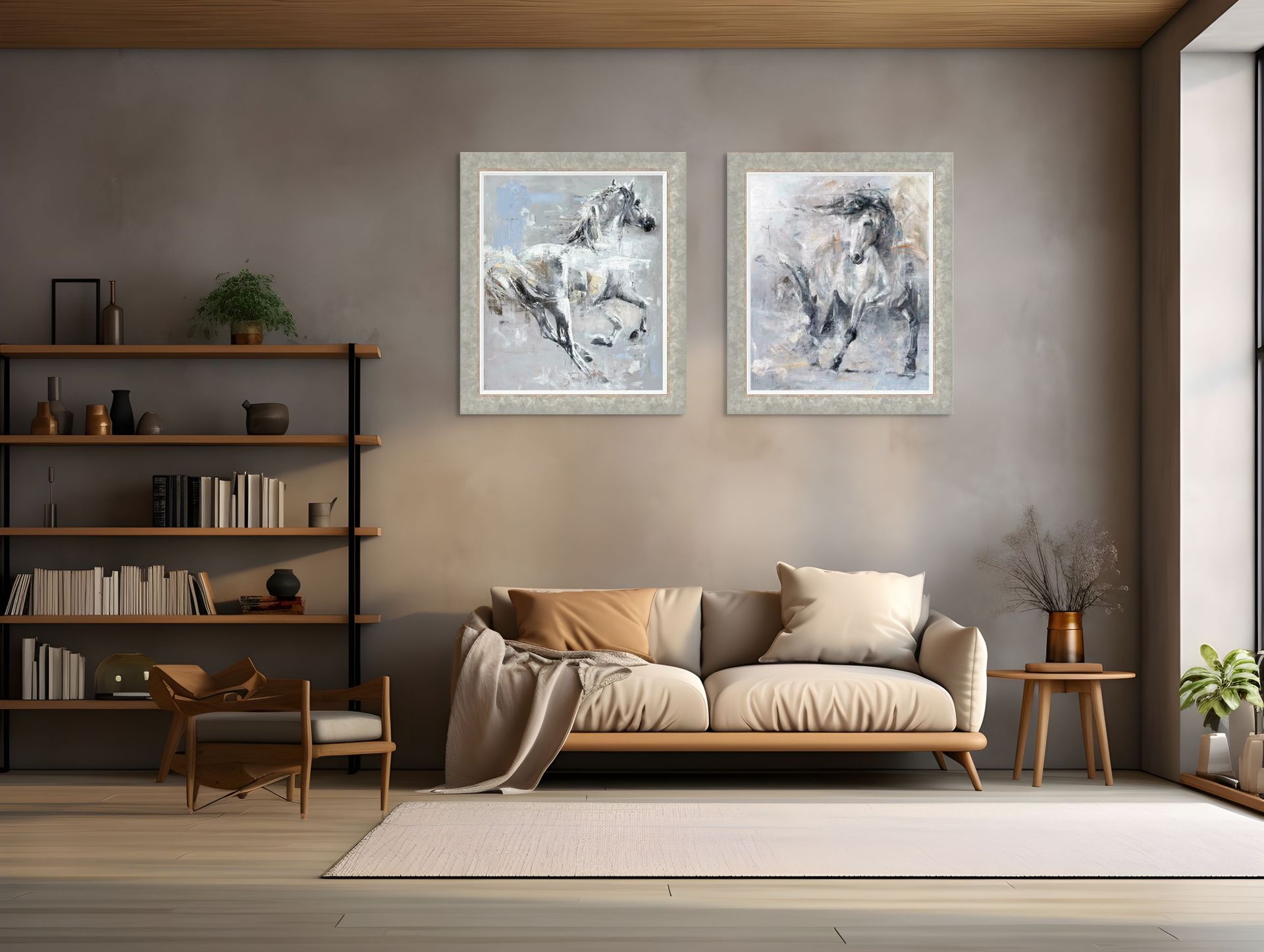Intuition by artist Josie Appleby captures an elegant grey horse in a flow of movement, a beautiful blend of white and grey bring this limited edition artwork to life. Josie is an established artist that often portrays animals in her work, equestrian subjects have become a focus in her recent work and her impressionist style portrays a wonderful sense of movement in her subjects.