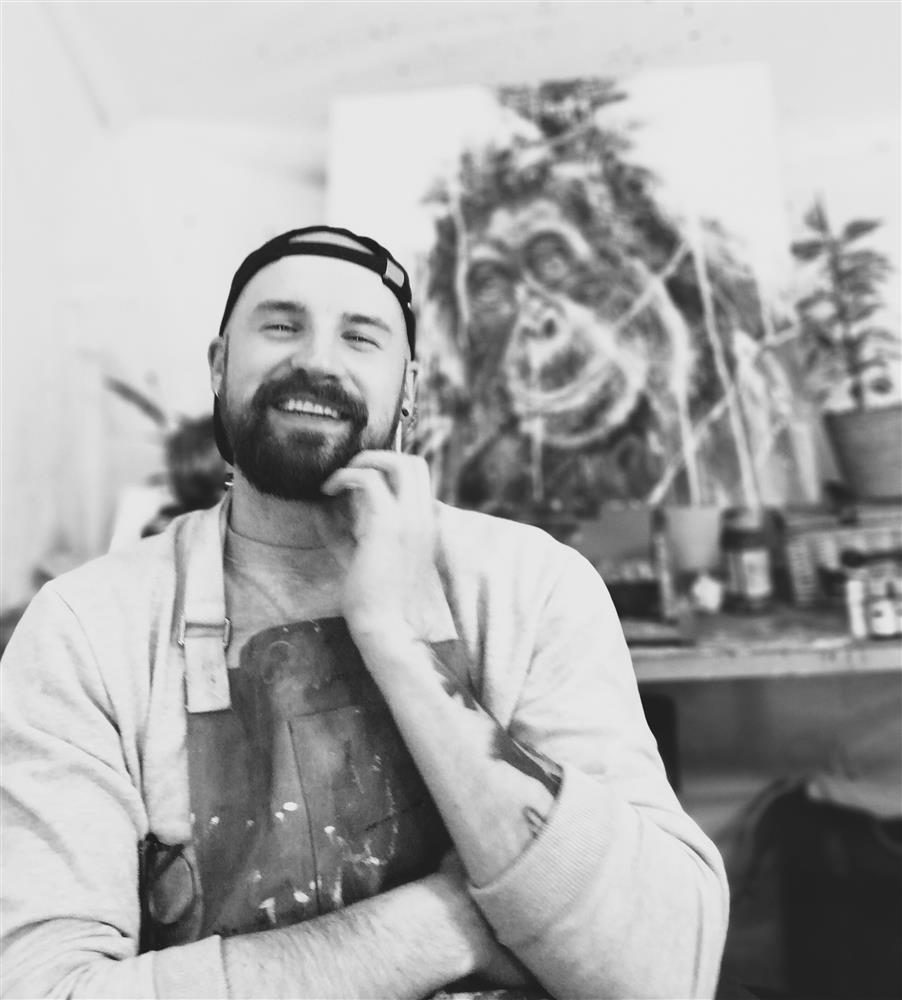 Joe Galindo, born in Mirfield, West Yorkshire, is a contemporary artist known for his bold, expressive style and unorthodox techniques. From an early age, Galindo demonstrated a natural flair for drawing, which eventually led him to pursue art full-time after university and a series of traditional 9-to-5 jobs.