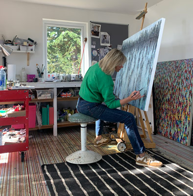 Her artwork is characterised by the use of moving figures, colourful abstract works capturing the spirit of society. This is her first collection of limited edition prints, all reproduced on canvas. Her Original paintings are often produced to quite a large scale with colour & movement on canvas. Her work is mesmerising & offers a new style of artwork to the gallery.
