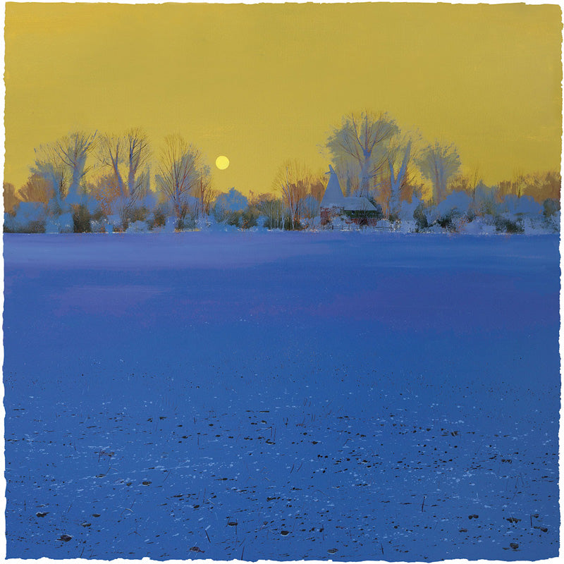 Winter Moon by Paul Evans is a captivating landscape painting that beautifully captures the calm and peaceful atmosphere of the British countryside in winter. A soft blanket of white snow covers the landscape, while the gentle glow of the setting sun and rising moon create a serene and timeless scene. Celebrated British landscape artist Paul Evans is known for his contemporary approach to depicting the natural scenery of the British Isles, blending modern techniques with a deep appreciation for nature’s timeless beauty.